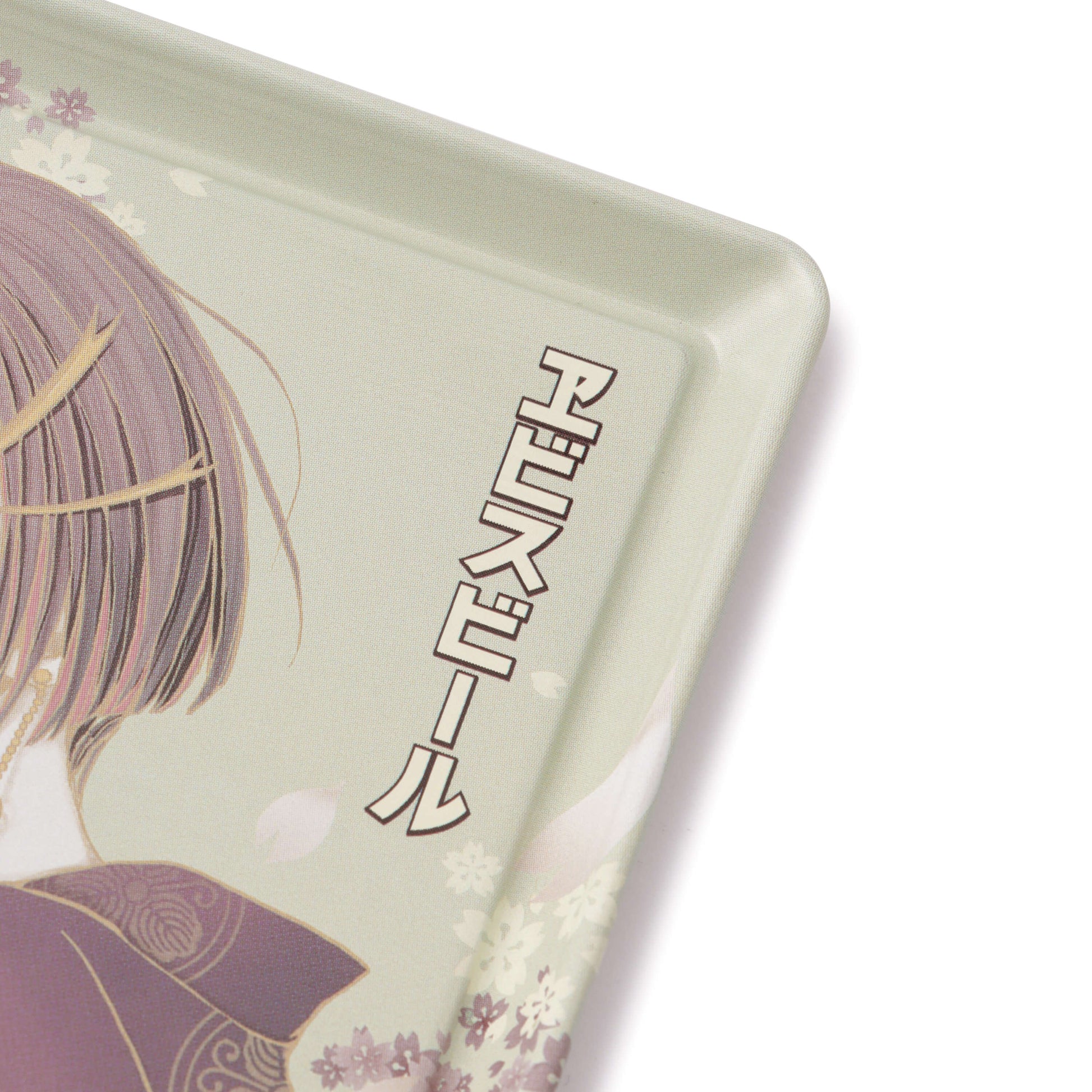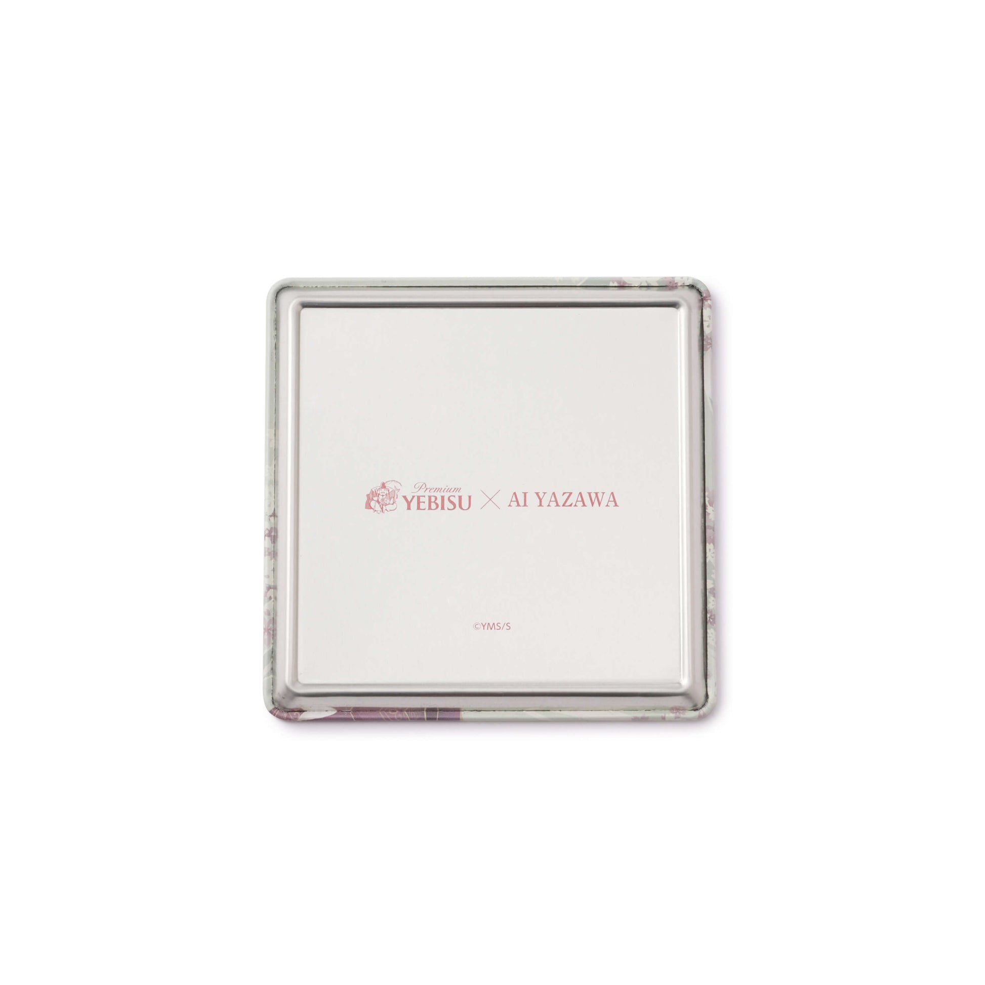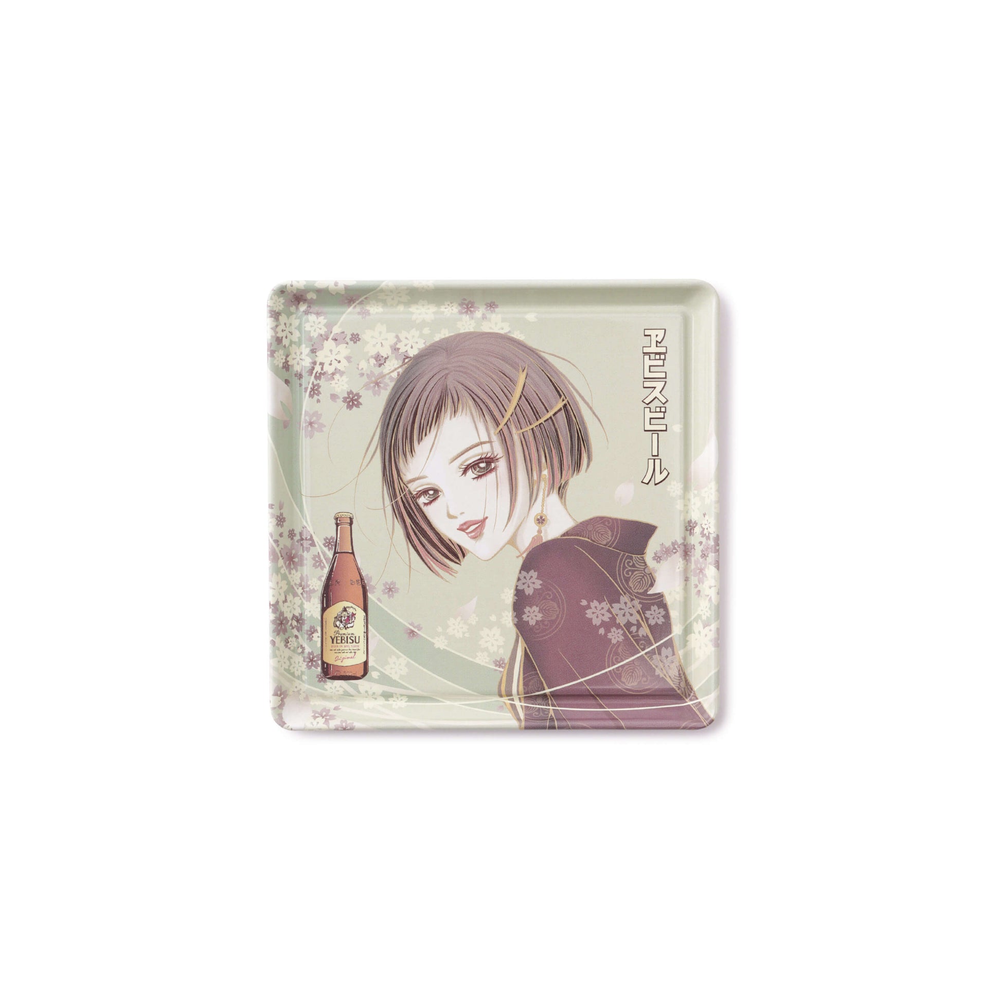 直径9cmのスクエア型ブリキコースター。矢沢あい氏による描き下ろし美人画「彩-あや- 第二景」が全面にプリントされたデザイン。