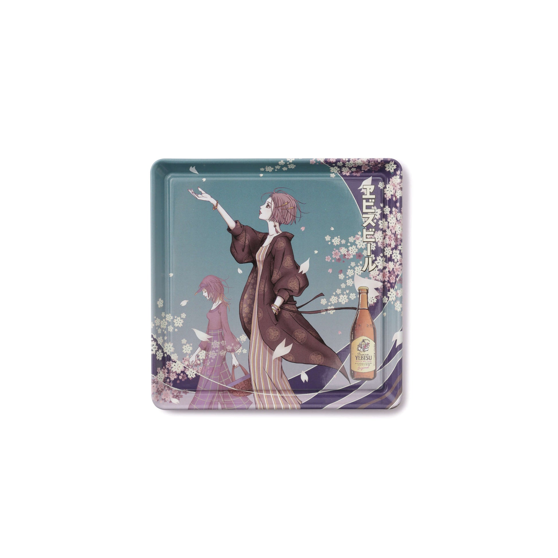直径9cmのスクエア型ブリキコースター。矢沢あい氏による描き下ろし美人画「彩-あや- 第一景」が全面にプリントされたデザイン。